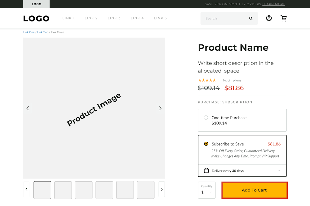 In our template we have a pricing model variation for subscriptions which is something you should consider if your business allows it. Be sure to make that as visible as possible.